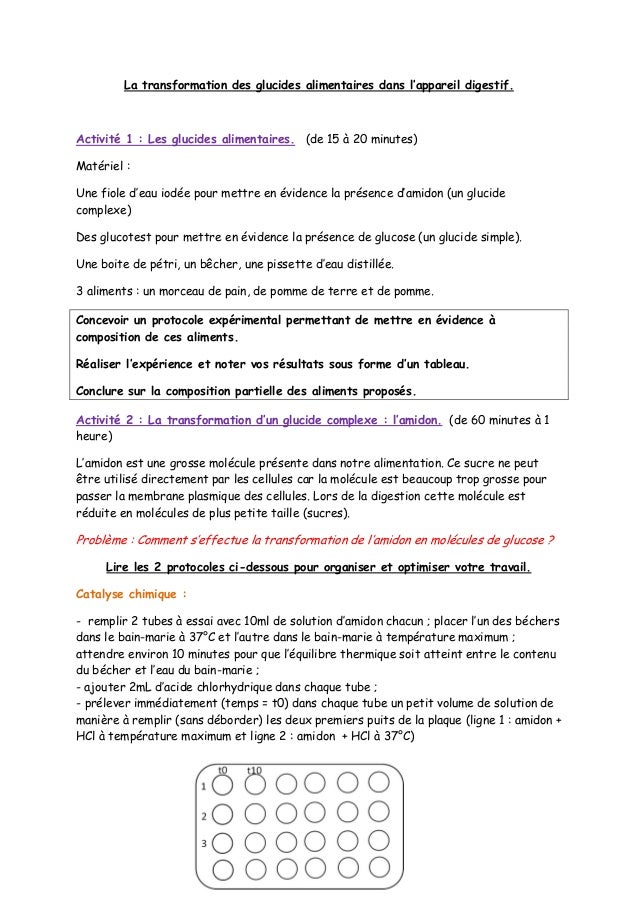 Tp 1 La Transformation Des Glucides Alimentaires Dans L